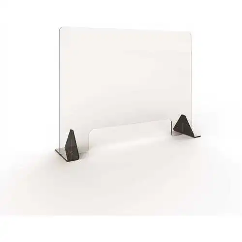 Clear armor solutions – 31.5 in. wide x 23.5 in. tall x 3/16 in. thick clear acrylic shield with a 12 in. x 4 in. passthrough – includes stylish, lock-in design black acrylic bases with incl. mounting tape that will not damage surfaces. For the customer who seeks a higher-end appearance and enhanced quality performance. Features include rounded corners and edges for safe use – eliminating the potential for cuts or scrapes to customers and employees and utilize only the highest quality materials. Â