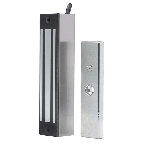 A magnetic lock (maglock) consists of an armature plate and electromagnet; electric strikes additionally secure standard doors and are compatible with most cylindrical door locks. DoorKing offers a full line of both maglocks and electric strikes for residential and commercial applications.